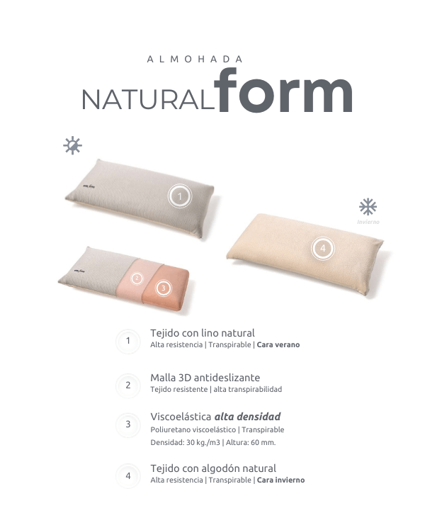 Almohada Natural Form | Lino, algodón y viscoelástica natural para un descanso equilibrado