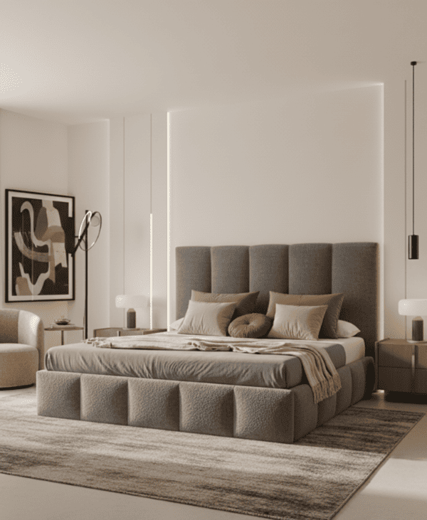CABECERO DE CAMA VERONA: ELEGANCIA TAPIZADA Y CONFORT VISUAL EN UN DORMITORIO DE DISEÑO