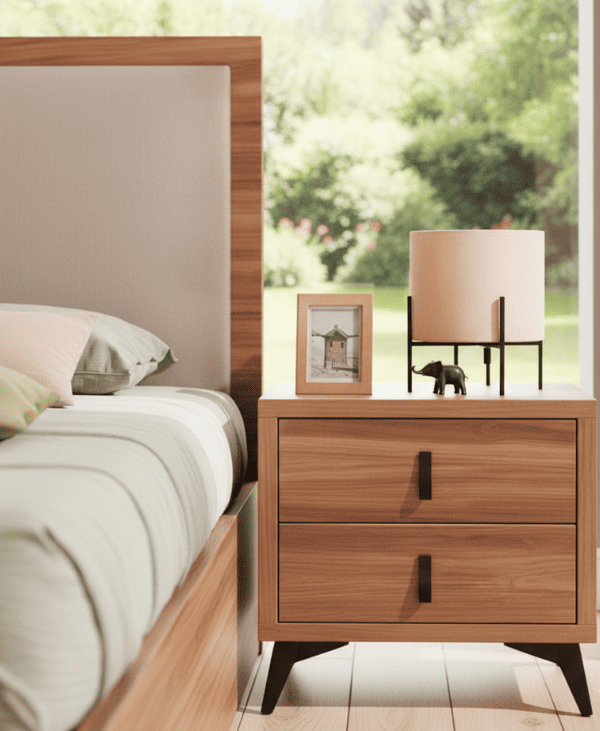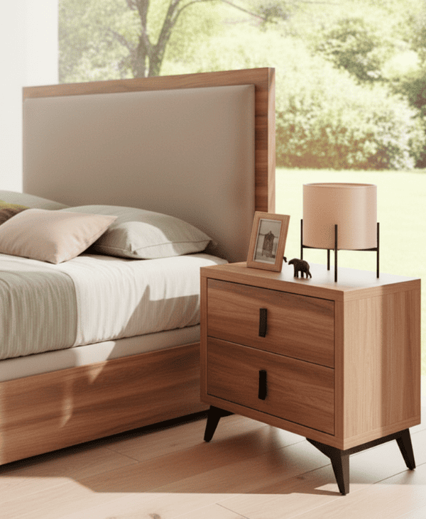• Estructura de madera robusta y elegante, disponible en acabados naturales y tonos neutros.