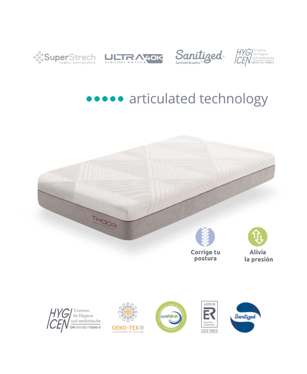 Certificado por Oeko-Tex®, CertiPUR-US®, Sanitized® y HygCen®, el Thoor está libre de sustancias nocivas y es totalmente hipoalergénico. Su diseño sostenible y su alta transpirabilidad lo convierten en una elección perfecta para quienes buscan confort, frescor y soporte equilibrado.