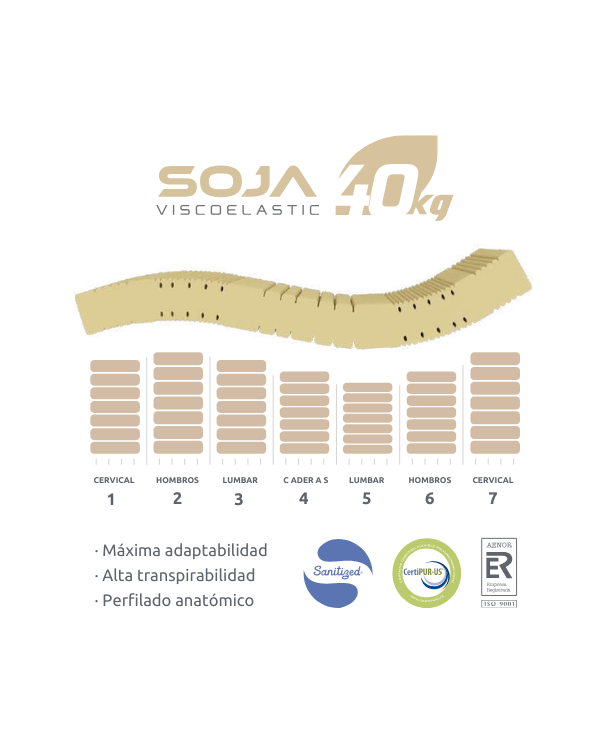 COLCHÓN VISCOELÁSTICO DE SOJA NATURAL | 7 ZONAS DE CONFORT Y