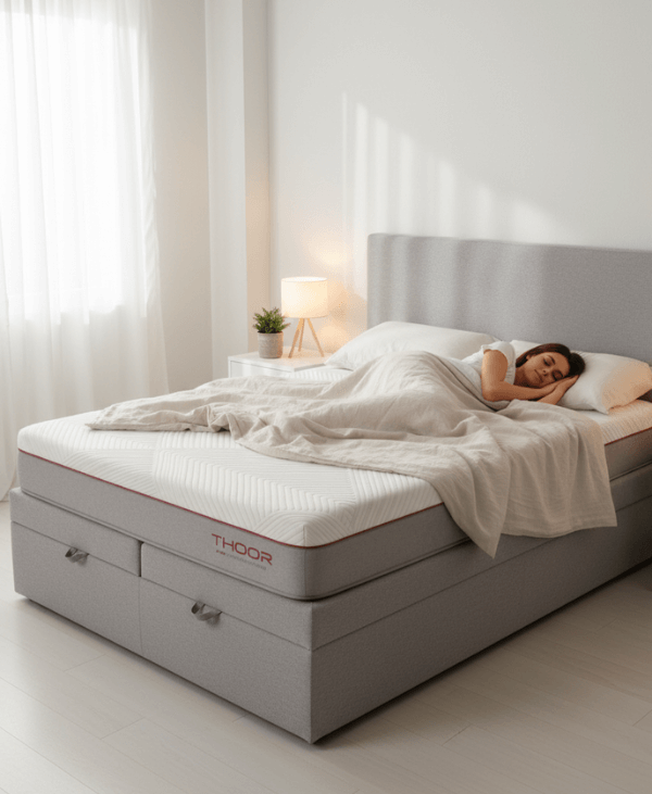 El colchón Thoor tiene una firmeza media-alta, ideal para quienes buscan un descanso con soporte estable sin renunciar a la comodidad.